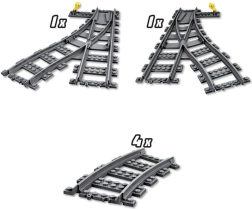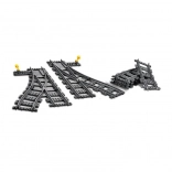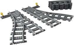 Sættet LEGO City sporskifter er en smart udvidelse til enhver togbane. Takket være kombinationen af lige og buede dele og en funktionsdygtig arm til skift af sporskifter designer du nemt et sofistikeret sporanlæg præcis som du vil. Afgreninger, omkørsler og nye stopsteder – alt klares på et øjeblik.