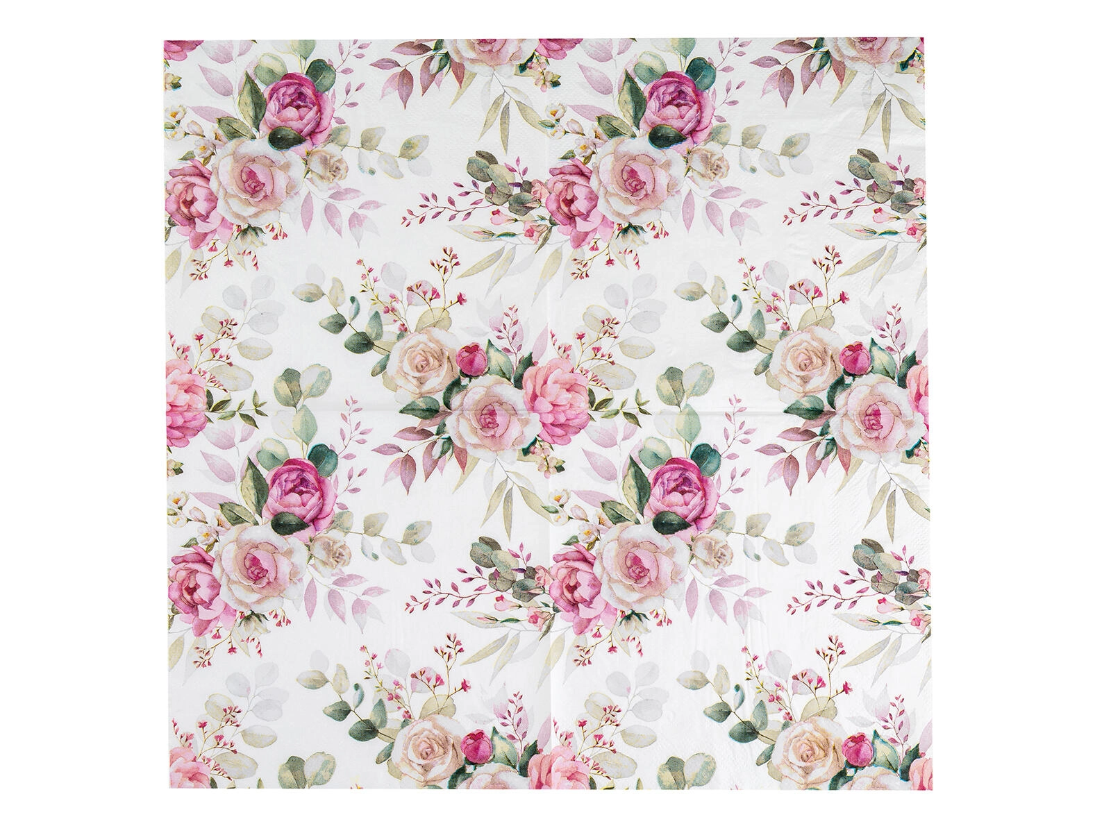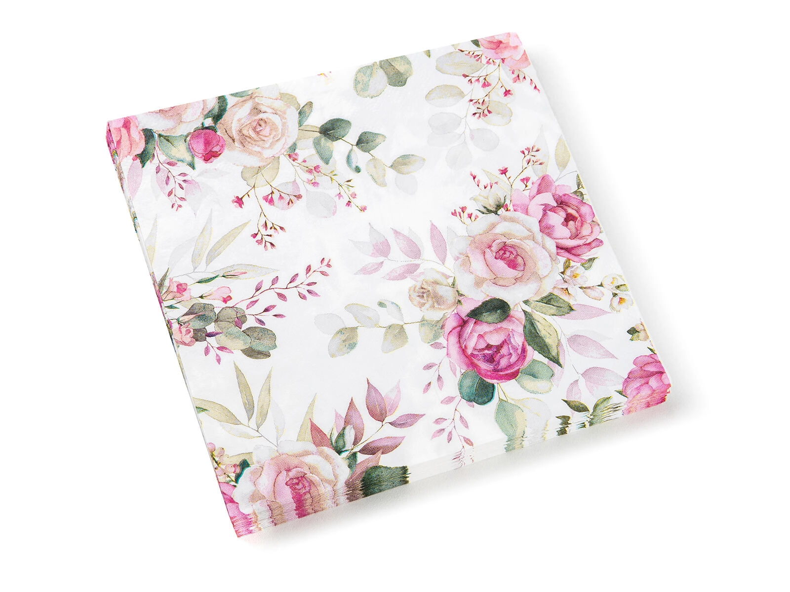 Servietterne i designet Pink Rose passer til romantisk, rustik og bryllupsinspireret bordpynt. Takket være det alsidige format 33 × 33 cm er de praktiske til servering af forretter, desserter og hovedretter.