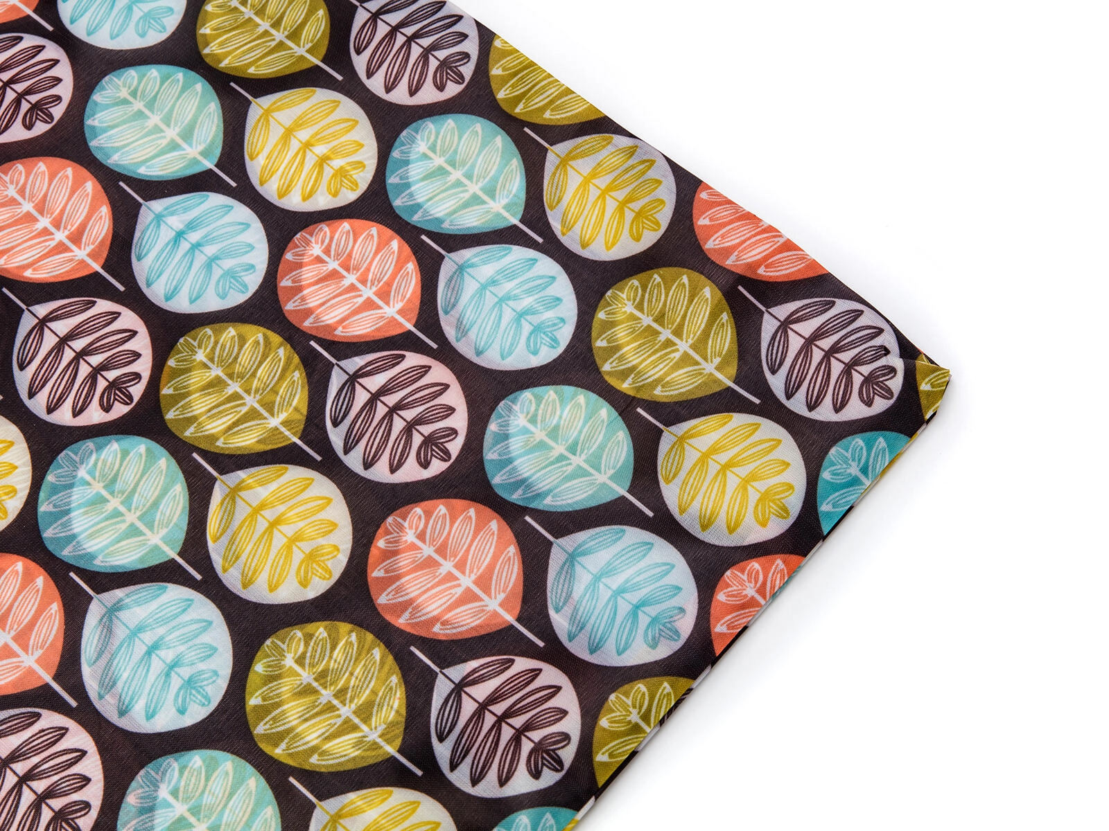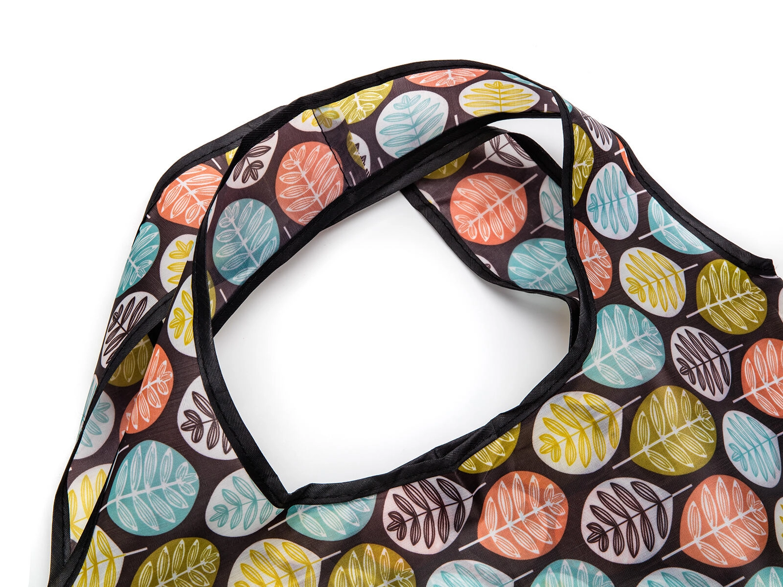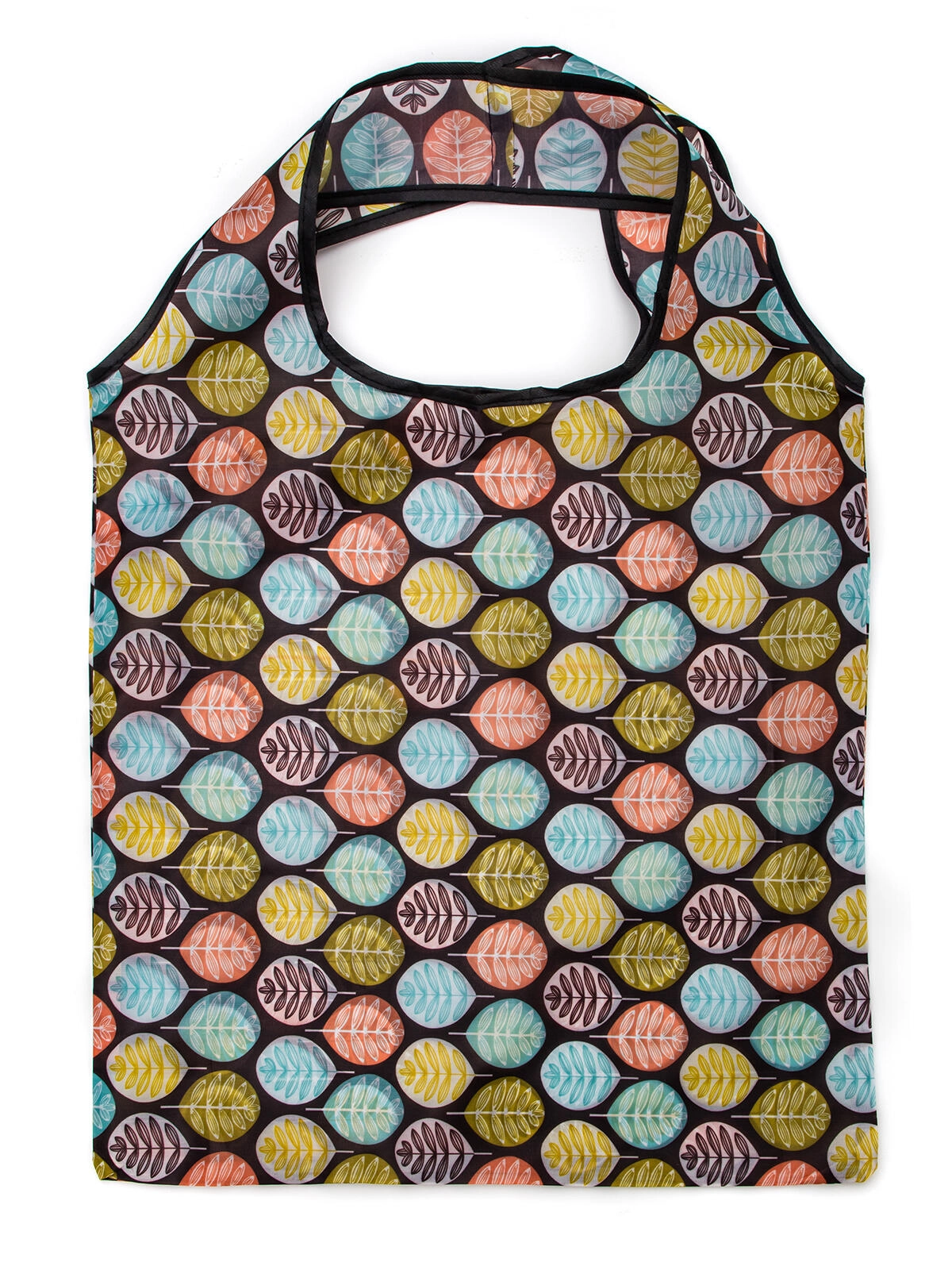 Det moderne, flerfarvede bladmønster giver dine indkøb et pift og skiller dig ud fra almindelige poser.