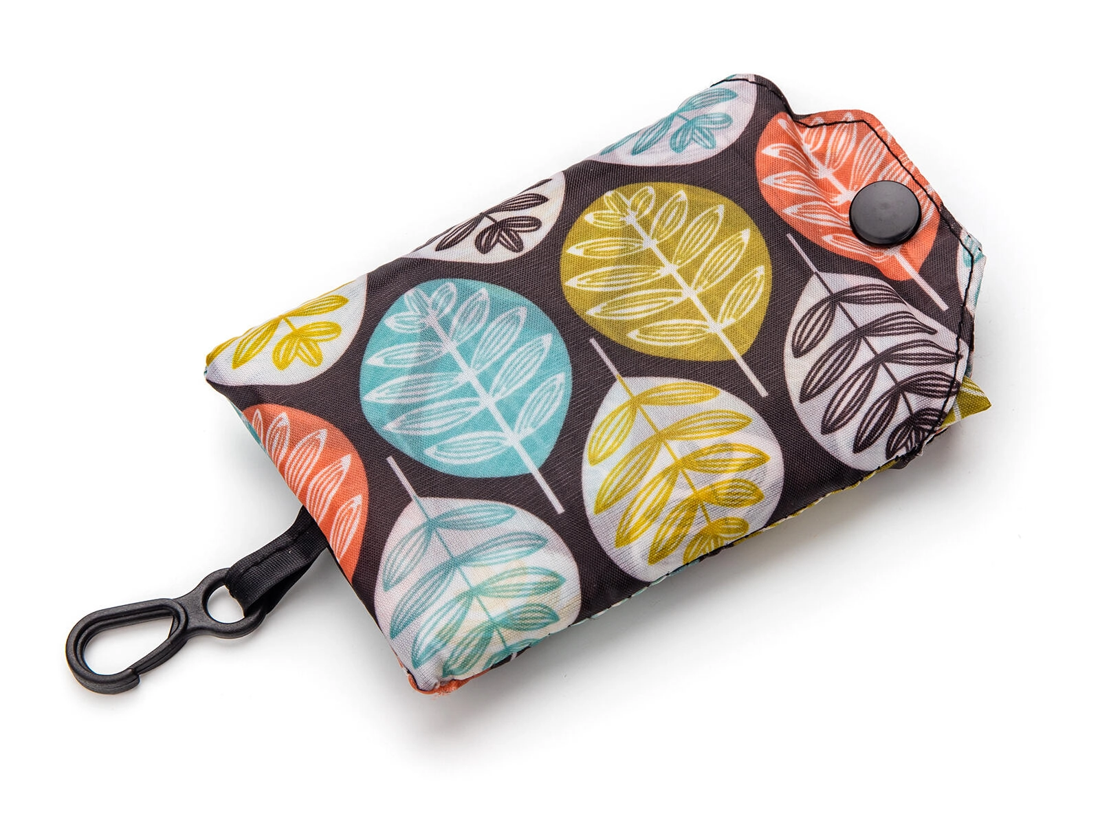Posen kan foldes i et lille etui med trykknap og klips – perfekt til nøglerne eller i håndtasken. Altid klar, når du har brug for den.