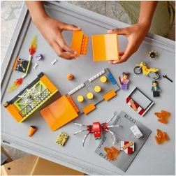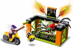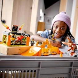 LEGO City Stuntz kaskadepark lader dig spænde motorcyklen med svinghjul og udføre fantastiske numre. Med flere ramper og flammeforhindringer tilbyder dette byggesæt uendelige muligheder for fantasifuld leg. Du kan kombinere det med andre LEGO City Stuntz sæt og skabe en endnu større kaskadepark.
