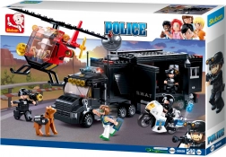 Dette detaljerede SLUBAN byggesæt fra politi-serien SWAT giver børn uendelige muligheder for leg og byggeri. Hovedrollen spilles af en robust mobil kommandobase – en sort lastbil med masser af realistiske detaljer – suppleret af en helikopter til luftoperationer og en hurtig politimotorcykel til forfølgelse af tyve. I æsken finder du 5 minifigurer og masser af tilbehør, der understøtter spændende historier og kreative scenarier.