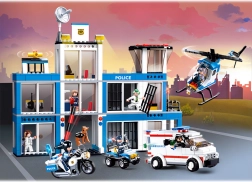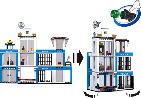 Nyd realistiske scenarier med forfølgelse og redningsaktioner. Sættet indeholder en detaljeret politistation med landingsplads til helikopter, ambulance og politimotorcykel. Med 605 klodser og 7 figurer kan du skabe dine egne historier – fra planlægning af en flugt fra fængslet til indsats fra en specialenhed.