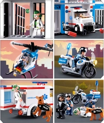 Der medfølger helikopter, politimotorcykel og redningskøretøj. Børn kan planlægge dristige indsatser og hurtige forfølgelser og skabe spændende scenarier for flugt fra fængslet.