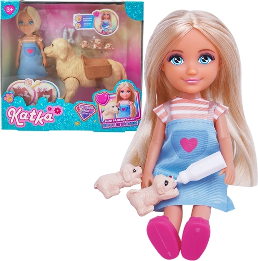 Den søde dukke Katka med sin trofaste hundeven giver timevis af sjov og kreativ leg for små børn. Høj kvalitet, farverigt design og mulighed for påklædning og omsorg udvikler fantasi, finmotorik og rolleleg.