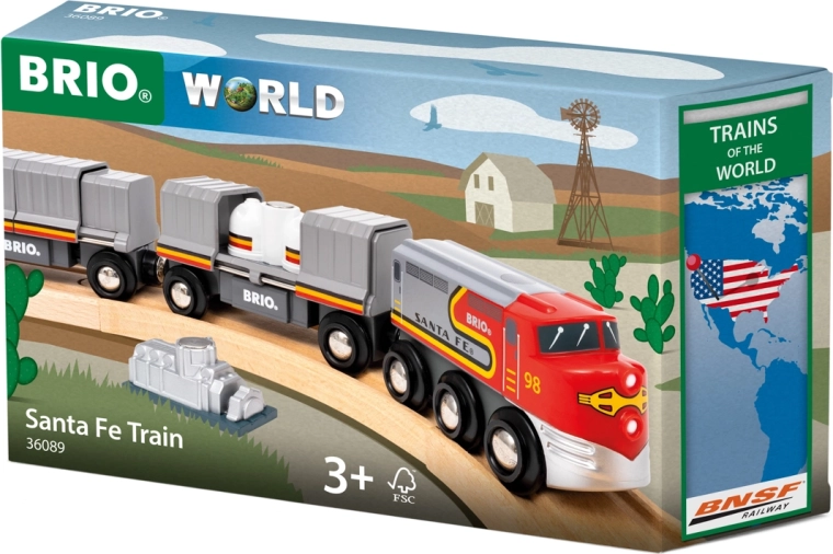 Giv børnene et stykke jernbanehistorie med trætoget SANTA FE, inspireret af den berømte lokomotiv “Super Chief” fra 1937. Det tidløse design i Santa Fe Warbonnet-farver og den robuste træudførelse vil glæde både små og store togentusiaster.