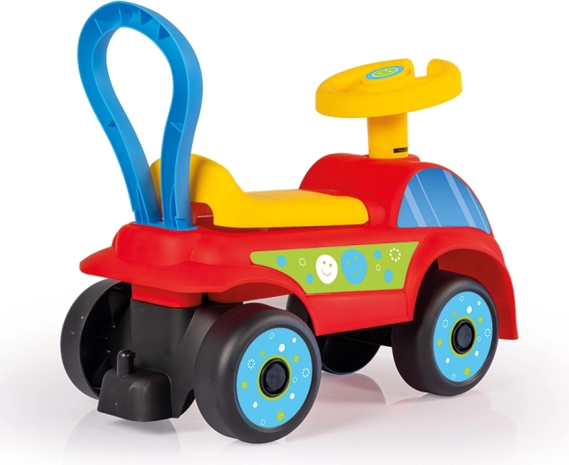 Det praktiske opbevaringsrum under sædet gemmer små skatte, mens hornet giver ekstra sjov. Den lette og stærke plastkonstruktion er ideel til både indendørs og udendørs brug. Takket være de stabile hjul er kørslen jævn og sikker.