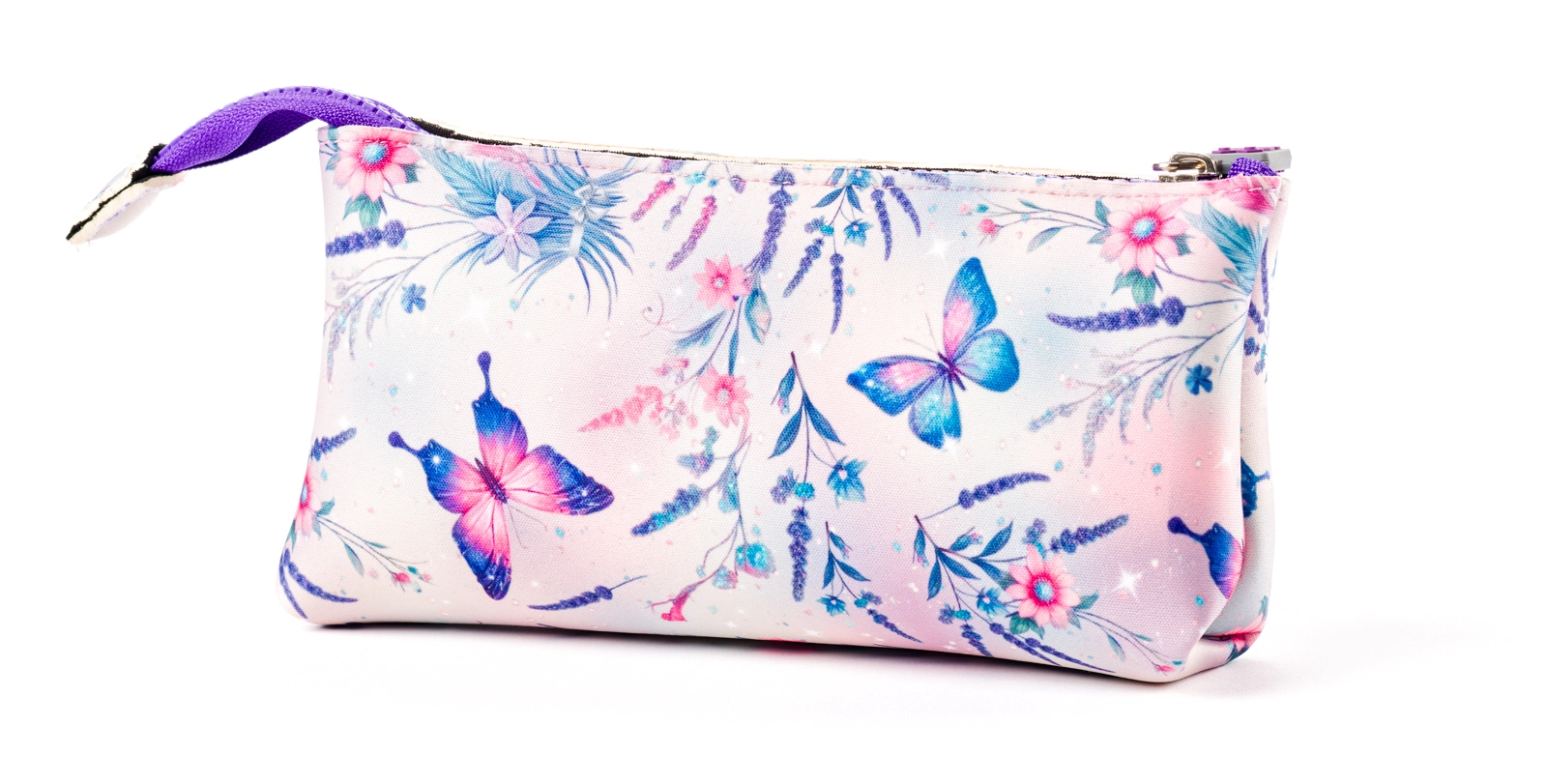 Det stilfulde etui med blomster og sommerfugle begejstrer både børn og voksne. Takket være det bløde og fleksible neopren beskytter det sikkert skriveredskaber, kosmetik og små elektronikdele. Den store lynlås gør daglig brug lettere og giver godt overblik over indholdet.