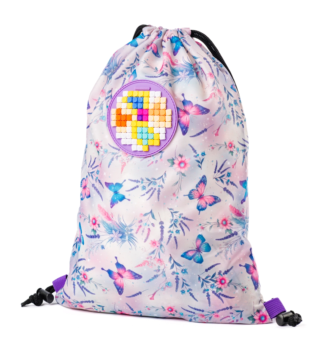 Sommerfugledesignet giver et glad udtryk og matcher nemt andre PIXIE CREW-tilbehør. Posen er kompakt, så den uden problemer kan lægges i skoletasken, eller bæres separat hver dag.
