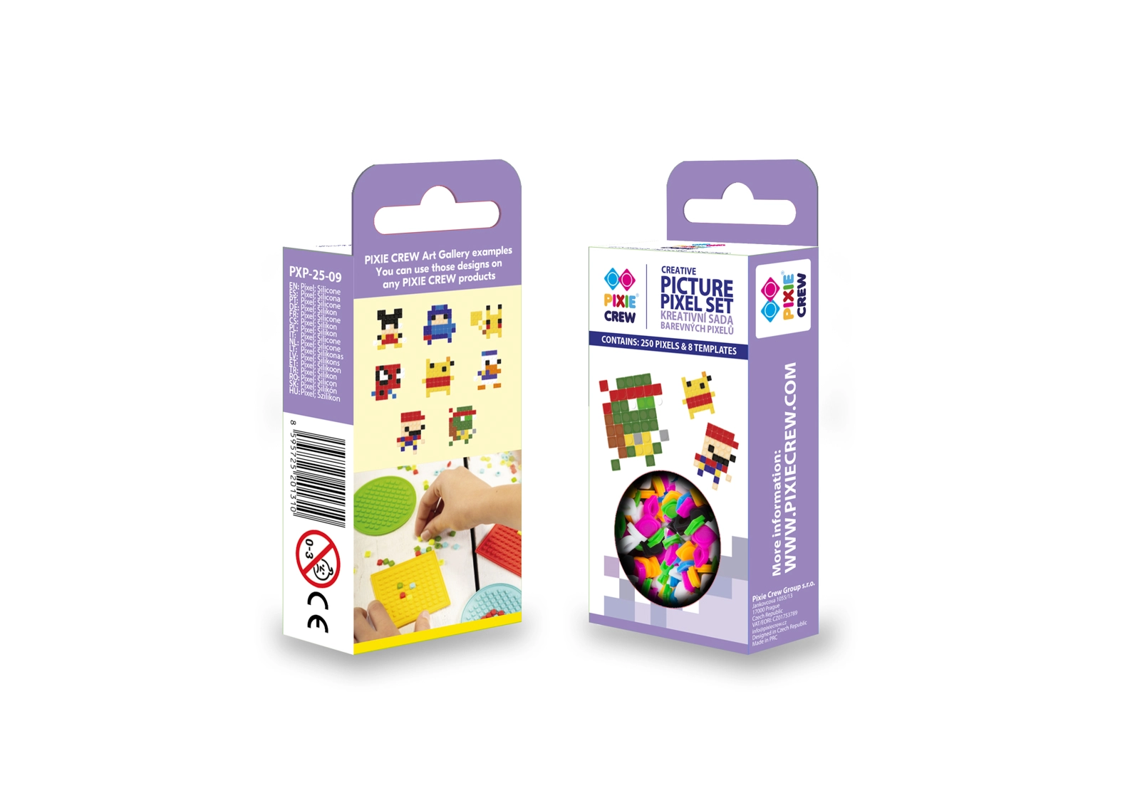 Det kreative PIXIE CREW-sæt er ideelt til små skabere, der elsker pixel art. I pakken finder du 250 kvalitets-silikonepixels og 8 motiver, som gør det nemt at lave sjove billeder. Takket være den patenterede form sidder pixels solidt på siliconepanelerne, så værket ikke lige sådan går fra hinanden.