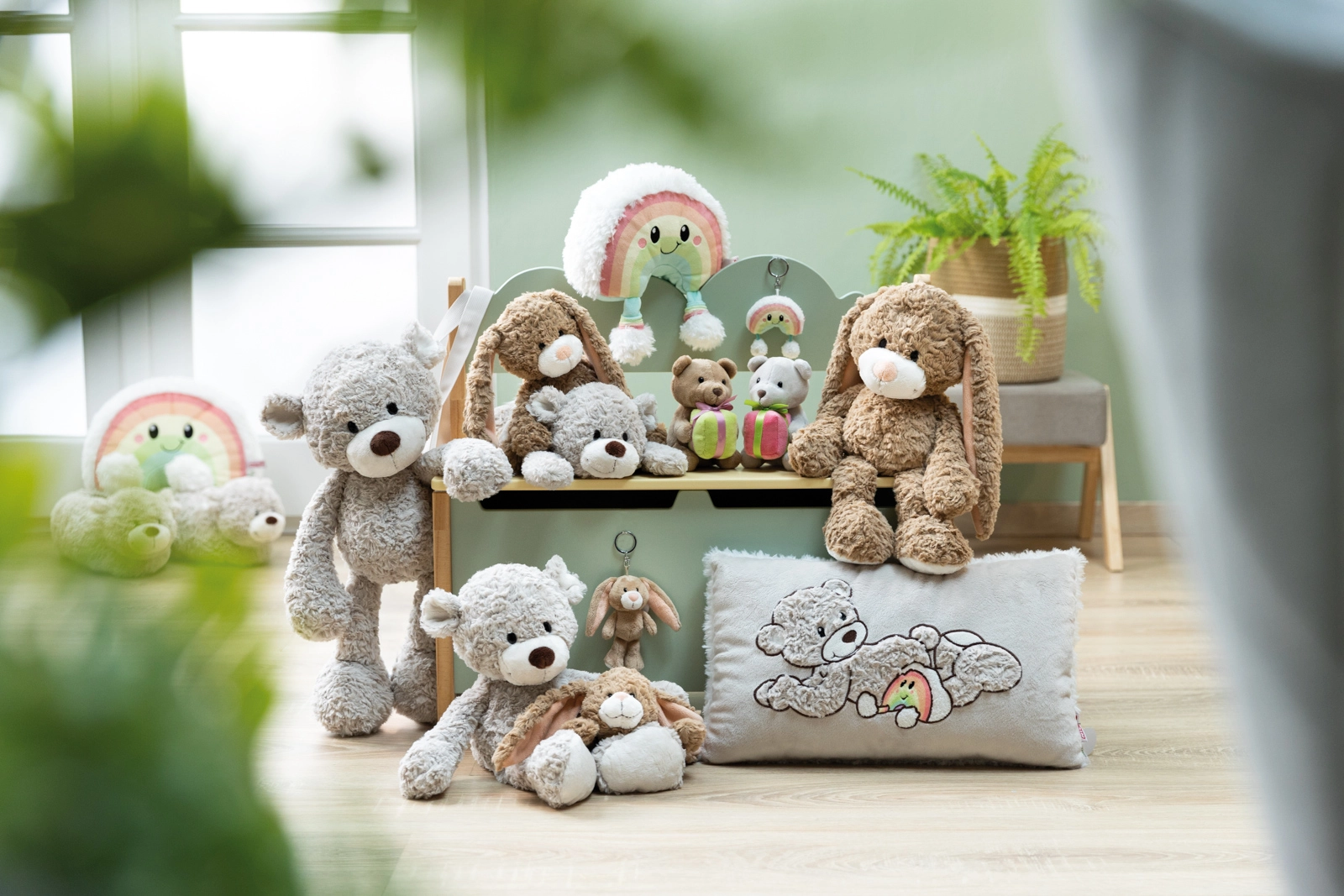 Den lyse beige kanin med lange ører er blød at røre ved og fanger opmærksomheden med det samme – perfekt som gave eller som lille glæde til dig selv.