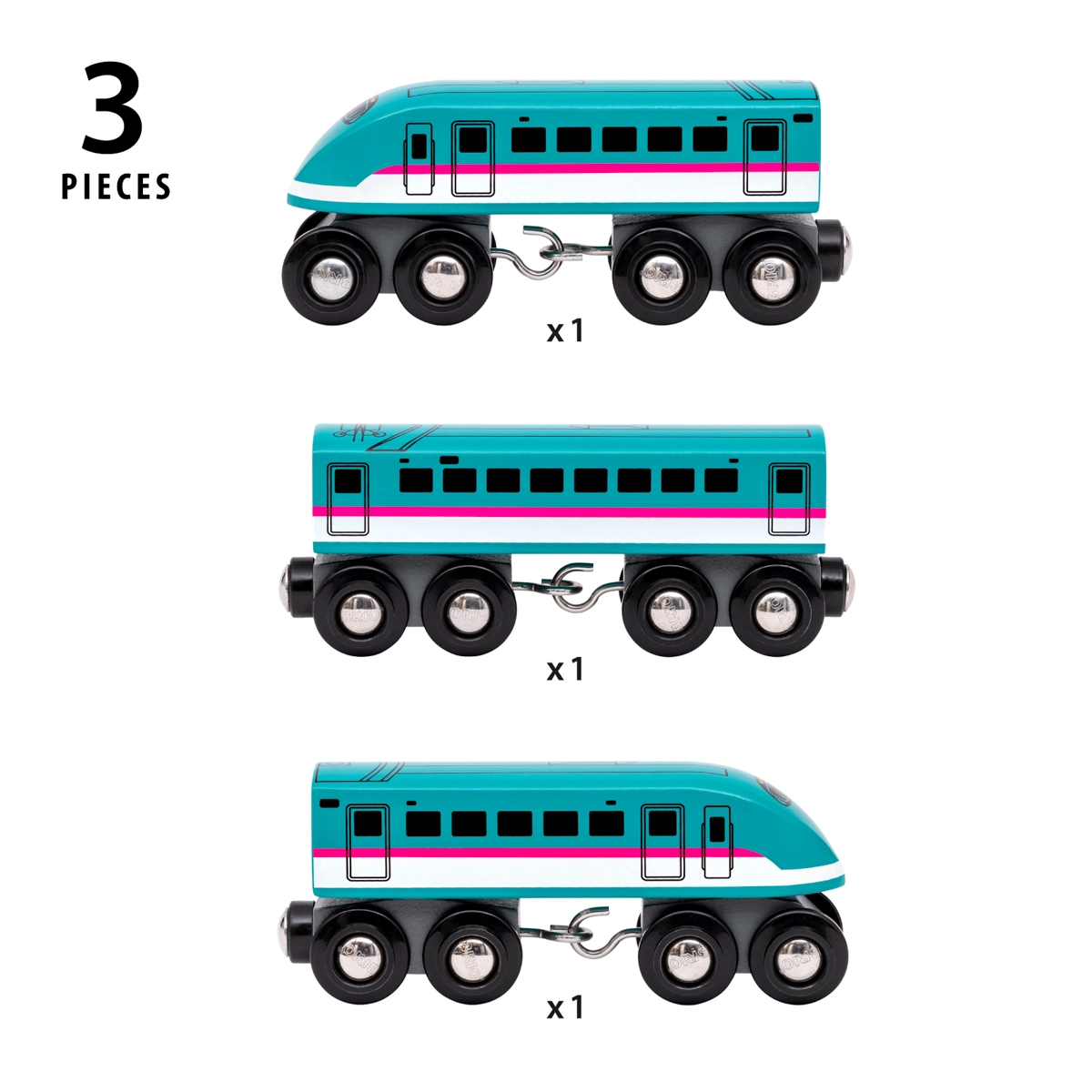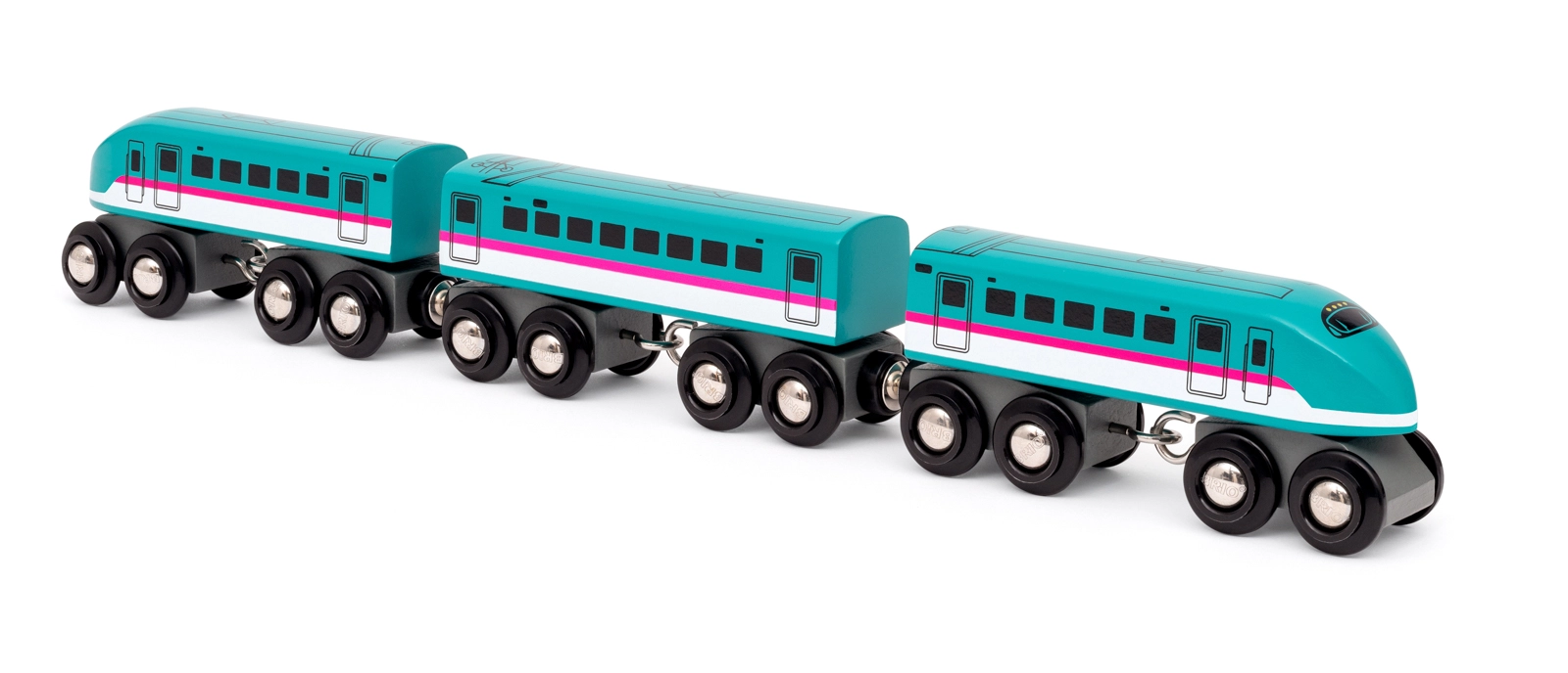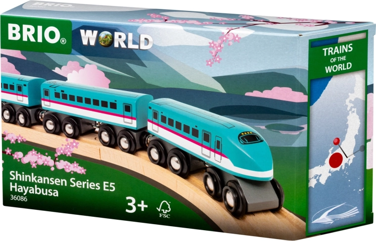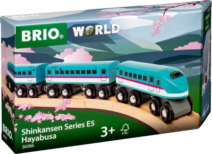 Giv børn et ikonisk højhastighedstog inspireret af det virkelige japanske Shinkansen Hayabusa E5 (320 km/t). Dette træsæt byder på autentisk udseende, robust udførelse og glidende bevægelse takket være dobbelte bogier med otte hjul på hver del. Et ideelt supplement til alle almindelige trætogbaner.