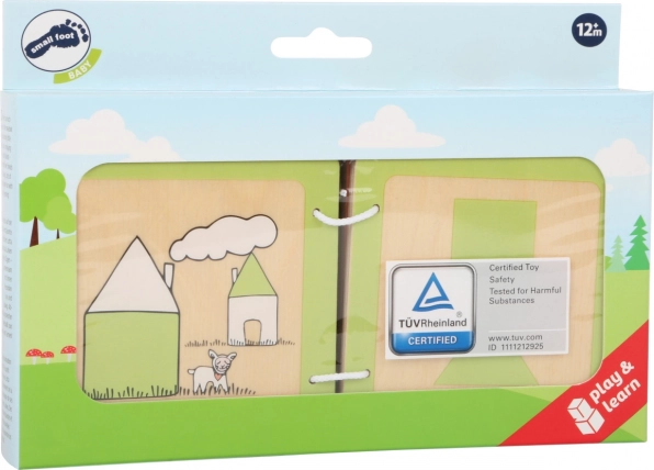 Udforsk de første former sammen med fåret Lotta! Denne kompakte træbog i robust materiale er ideel til de mindste. Den er spytbestandig, nem at rengøre og understøtter sanseopfattelsen samt finmotorikken takket være enkle illustrationer og former.