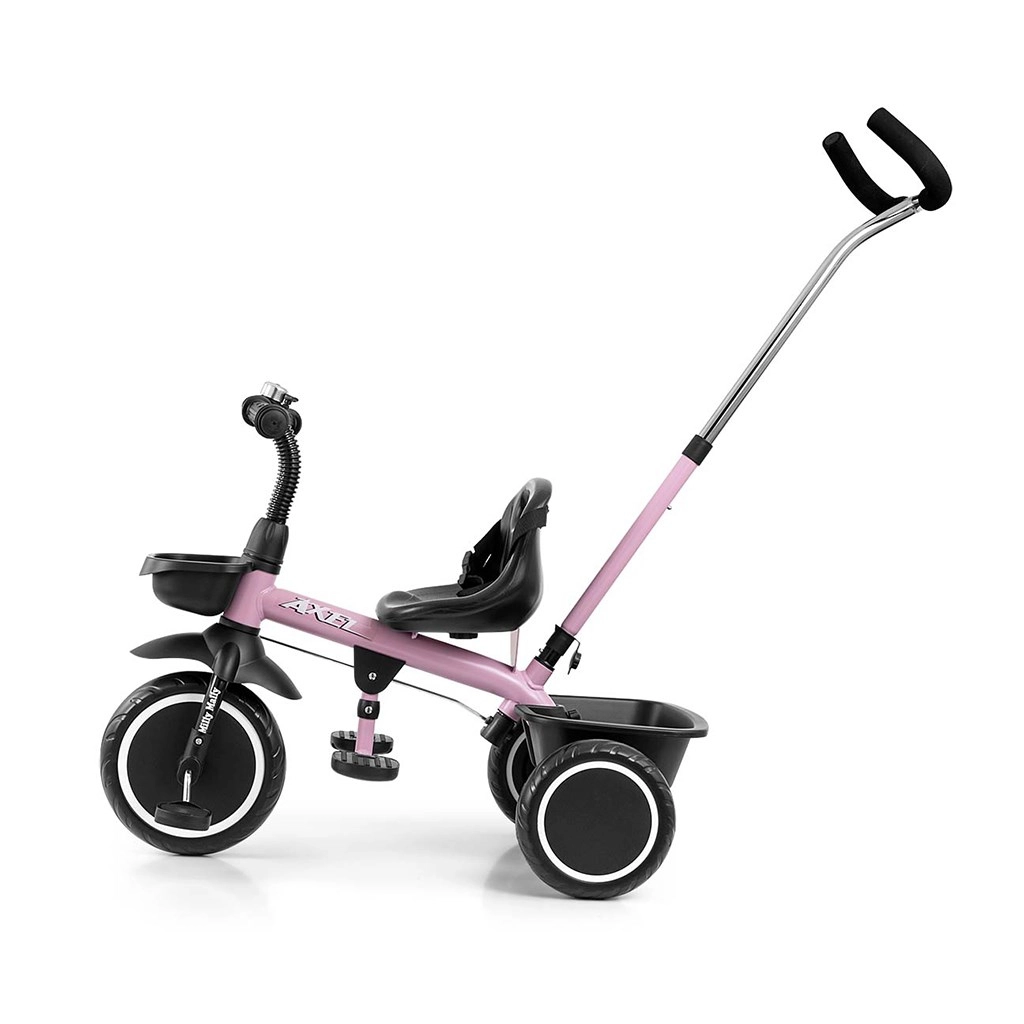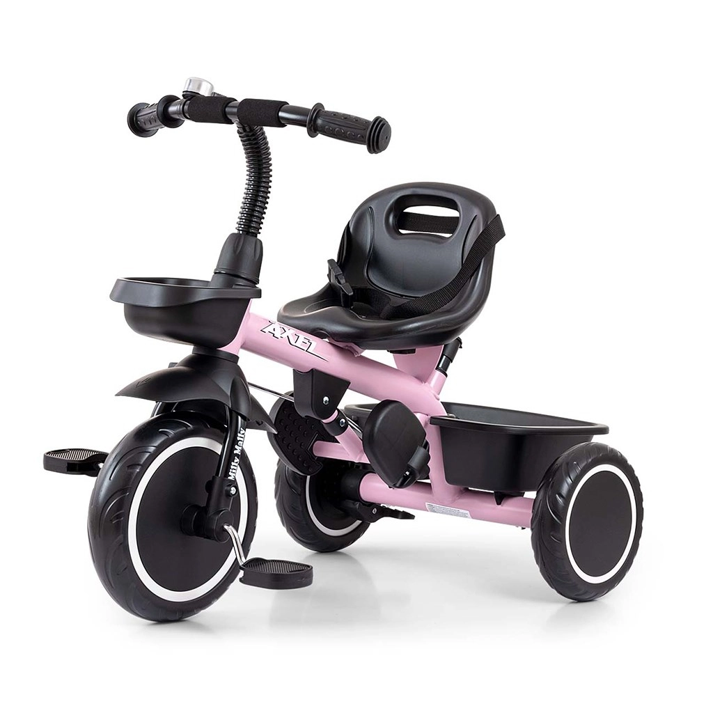 Let og holdbar børnetrehjuler MILLY MALLY Axel til børn 1–3 år kombinerer komfort, sikkerhed og sjov. Takket være et justerbart sæde, en aftagelig styrestang og mulighed for blokering/frigørelse af pedaler vokser den med barnet. Brede EVA-hjul sikrer stabilitet på forskellige underlag, to kurve og en klokke glæder de små ryttere, mens sikkerhedsseler giver forældrene ro i sindet.