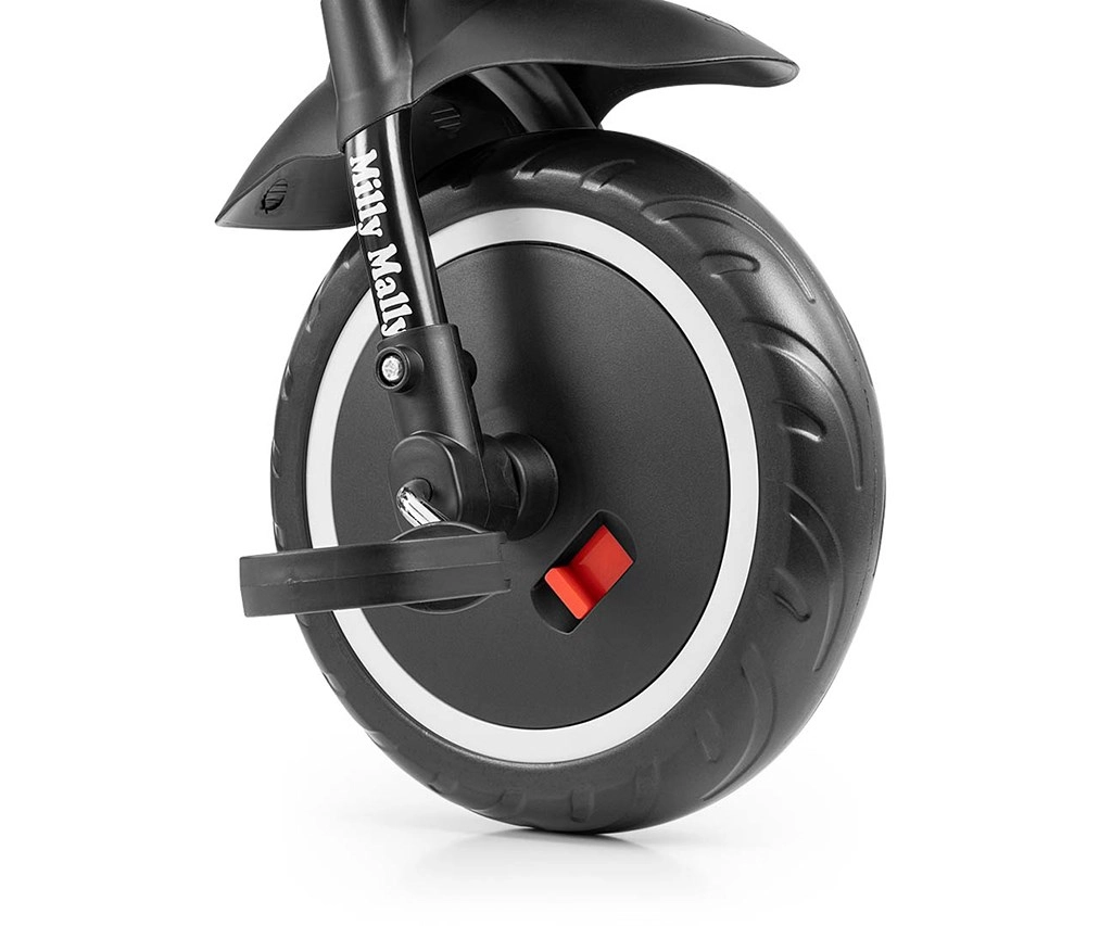 Trehjuleren MILLY MALLY Axel er det ideelle valg til dit barns første ture. Den kombinerer en solid stålkonstruktion med kvalitetsplastdele, ergonomisk formet sæde med tilpasning af afstand til styret og brede EVA-hjul for en jævn og stille kørsel.
