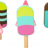 Seks kugleis til kræmmerhus og seks farverige ispinde på pind. Hver lækkerbisken har sin plads og indbyder til at vælge og kombinere.
