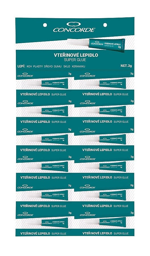 Universelt sekundlim CONCORDE på 3 g til hurtige og stærke reparationer i hjemmet og værkstedet. Velegnet til metal, plast, træ, gummi, glas og keramik. Giver øjeblikkelig effekt og efter hærdning efterlades en gennemsigtig samling med styrke op til 140 kg/cm².