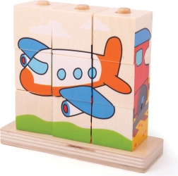 Træpuslespil Bigjigs Baby Transportmidler er det ideelle legetøj til at udvikle motoriske færdigheder og hånd-øje-koordination hos børn. Indeholder 10 stykker træblokke med fire transportscenarier: tog, bil, traktor og fly.