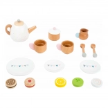 Dette smukt udførte tesæt til børn lader små værter og værtinder servere for deres gæster med yndige kopper, en kande og andre tilbehør. Den høje kvalitet af massivt træ sikrer robusthed og lang levetid for legetøjet, som er designet specielt til små hænder.