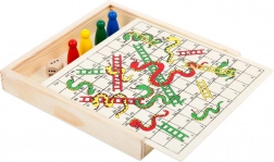Dette brætspil 2Slange og Stiger22 byder på sjov for hele familien. Målet med spillet er at komme fra 1 til 100 og overraske dine modstandere. Hvis du lander på et felt med en slange, forlænges vejen, mens en stige bringer dig tættere på målet. Spillet er kompakt, og alle dele er sikkert opbevaret i sin egen æske, som også fungerer som spilleplade.