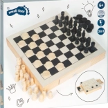 Præcist forarbejdede trædele giver en behagelig spillefornemmelse og lang holdbarhed. Sættet er perfekt til både begyndere og øvede – det understøtter udvikling af strategi, tålmodighed og taktisk tænkning. Det tidløse design glæder både børn og voksne.