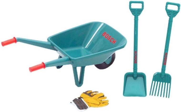 Dette realistiske BOSCH havesæt til børn efterligner rigtigt værktøj og motiverer små hjælpere til aktiv leg udendørs. Den lette konstruktion, komfortable greb og den stabile trillebør med ét hjul gør det nemt at skubbe og manøvrere.