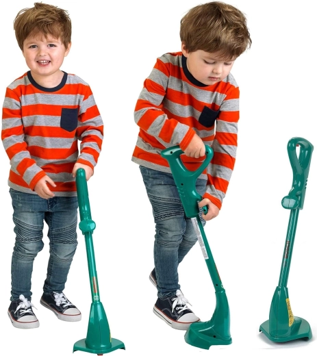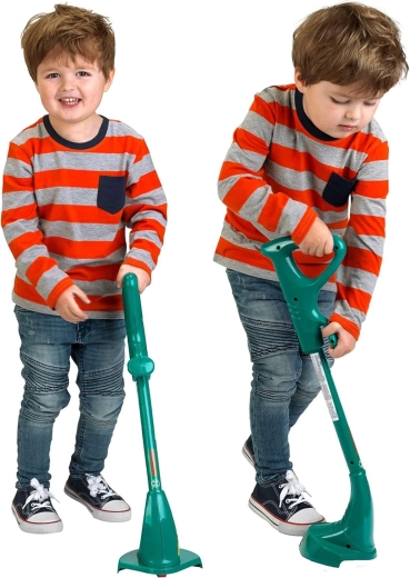 Børnegræstrimmer med lyd fra BOSCH vil glæde enhver lille gartner. Når den bevæges hen over jorden, laver den mekanisk kliklyd uden batterier, har et realistisk design med officiel BOSCH-licens og er ideel til legende efterligning af havearbejde.