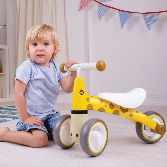 Den søde DIDICAR-løbecykel i giraffedesign hjælper børn fra 12 måneder med at udvikle balance, koordination og grovmotorik. Takket være den stabile firehjulede konstruktion, bløde håndtag og glatte hjul er kørslen komfortabel og sikker både inde og ude. Det lave sæde (24 cm) gør det nemt at stige på og øger de små rytteres selvtillid.