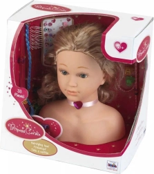 Dette friseringshoved med realistisk udseende blond hår er perfekt til børn, der vil forbedre deres frisørfærdigheder. Træn fletning af fletninger og skab forskellige frisurer, som du kan pynte med de medfølgende accessories.