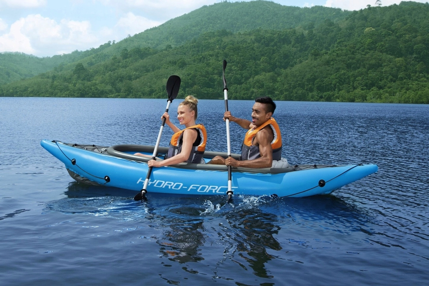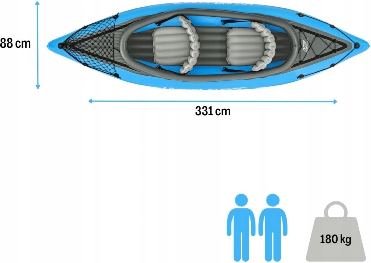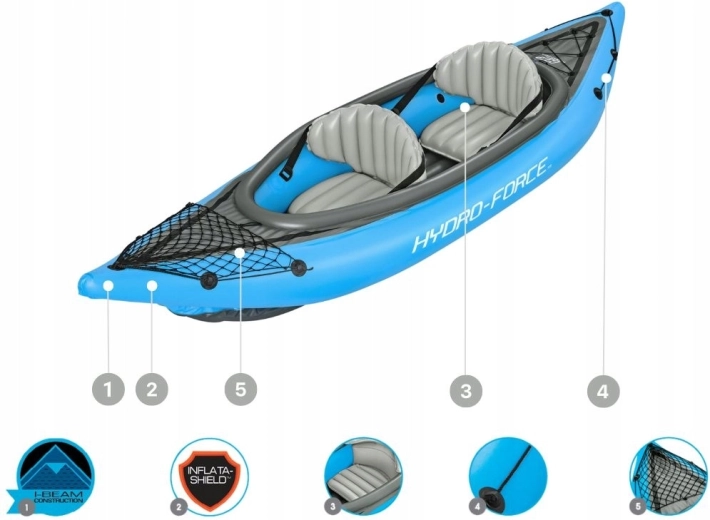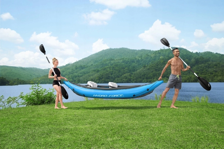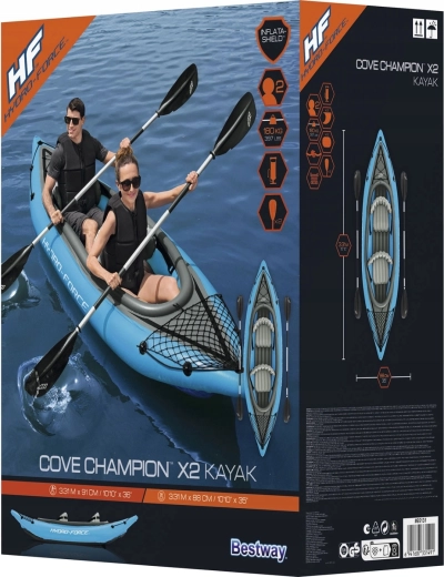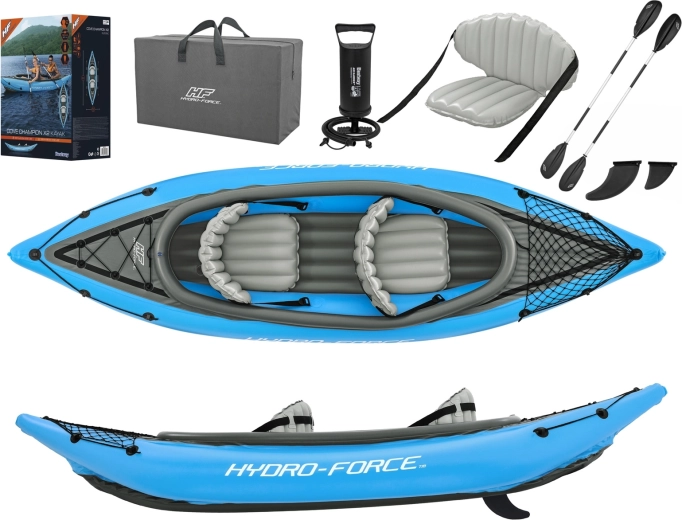 Den oppustelige kajak Hydro‑Force Cove Champion X2 er ideel til rekreativ roning på søer og rolige floder. I sættet finder du alt, hvad du behøver: 2 dobbeltsidede pagajer, Air Hammer håndpumpe, 2 justerbare oppustelige sæder med ryglæn og transporttaske. Den robuste flerkammerkonstruktion med stiv oppustelig bund sikrer stabilitet og tryghed på vandet.