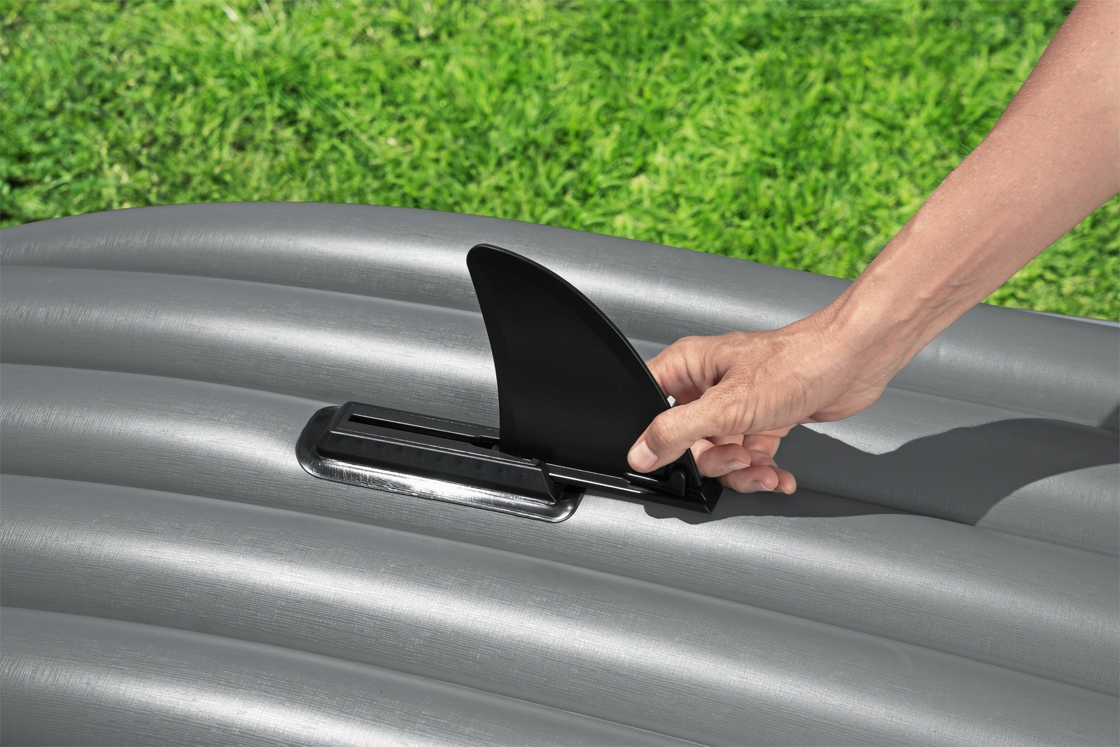 Montér finnen for stabil kurs på stille vand og i let vind. Nemt at skubbe på og tage af, hvilket gør kajakken kompakt at opbevare.