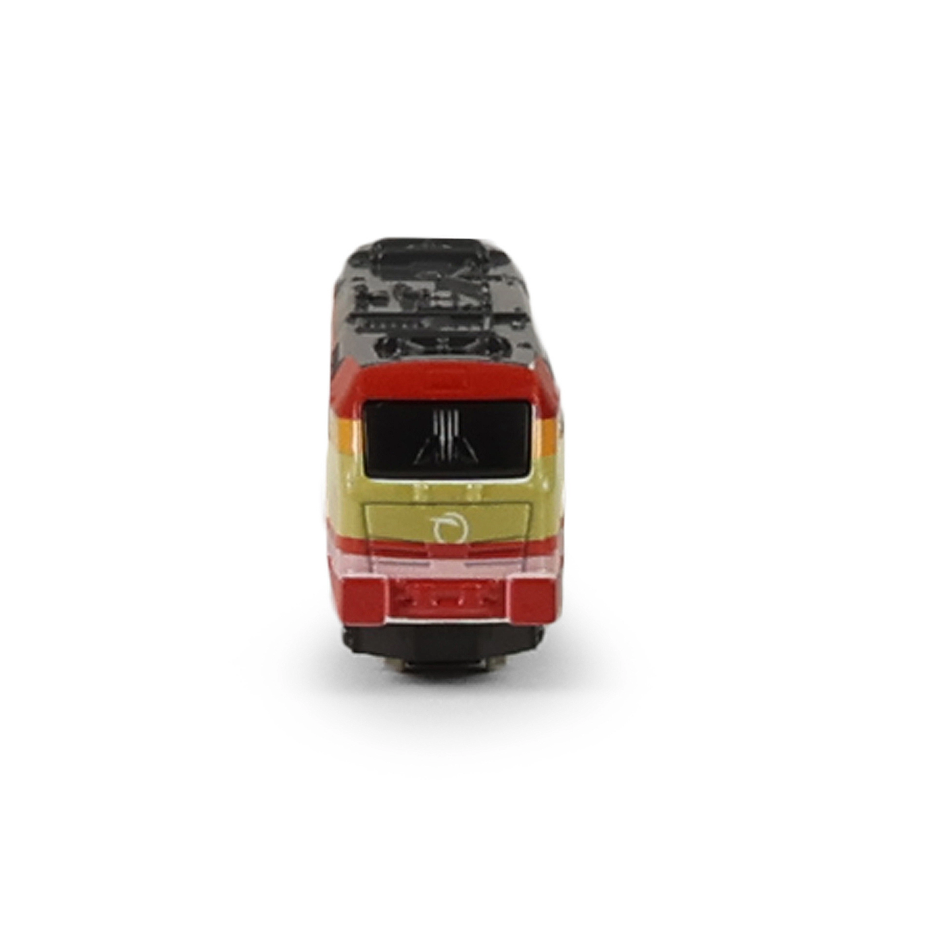 Denne metallokomotiv ZSSK Slovakiske jernbaner på 16 cm udmærker sig ved præcis forarbejdning og en attraktiv farvelægning med bjergmotiv. Takket være frihjul er den ideel til fri leg på plane overflader og som dekorativt indslag i samlingen hos jernbaneentusiaster.