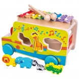 Trælegetøjet Bino er den perfekte ledsager for ethvert barn. Denne lastbil fungerer ikke kun som et træk-legetøj, men byder også på sjov musikalsk leg takket være xylofonen på taget med køller. Legetøjet hjælper med at udvikle færdigheder som genkendelse af farver og former og understøtter koordination.
