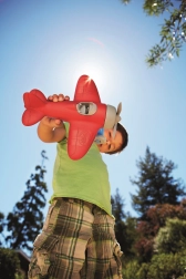 Den roterende propel, hjulene og den lette konstruktion stimulerer fantasien og aktiv leg både i haven og på børneværelset.