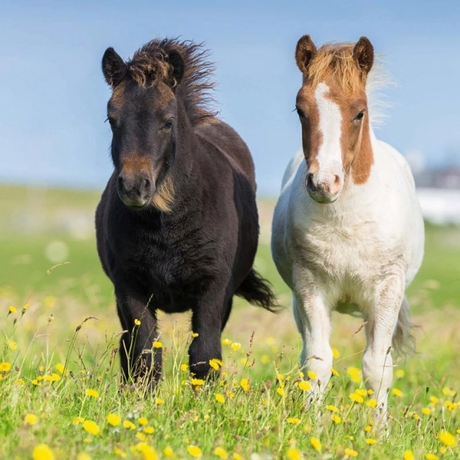 Detaljerede skildringer af heste på blomstrende enge og græsgange stimulerer fantasien og skaber en behagelig, beroligende oplevelse ved puslespilslægning.