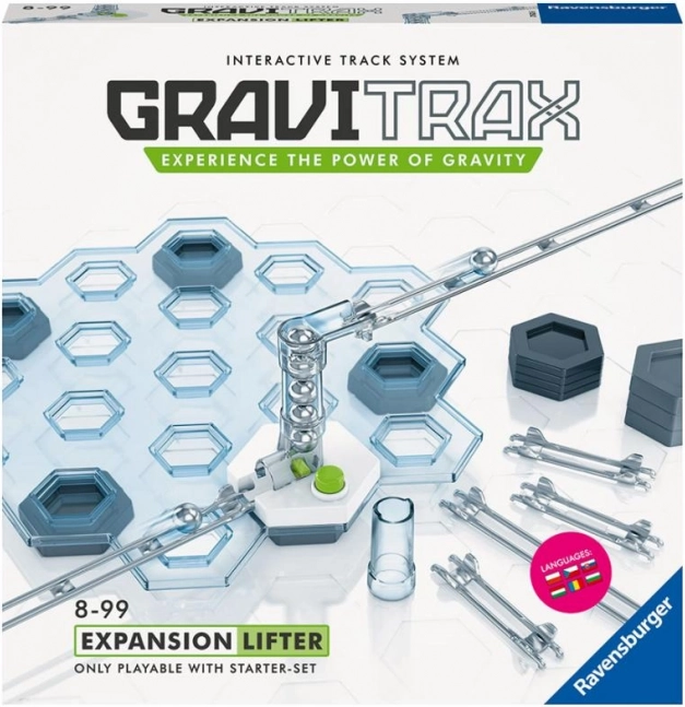Udvidelsessættet GraviTrax elevator tilføjer en smart mekanisme til din bane, som automatisk transporterer kuglerne tilbage til et højere niveau. Det giver dig mulighed for at skabe længere, hurtigere og mere opfindsomme ruter. Et perfekt valg for alle byggere, der vil have mest muligt ud af deres bane.