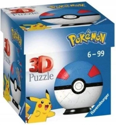 Træd ind i Pokémon-universet med den fængende kugle-udgave af Ravensburger 3D-puslespil Great Ball med 54 brikker, ideel til børn fra 6 år. De præcist formede brikker passer glat sammen og udvikler kreativitet, logisk tænkning og tålmodighed. Takket være de holdbare materialer kan du nyde gentagen samling uden at miste formen.