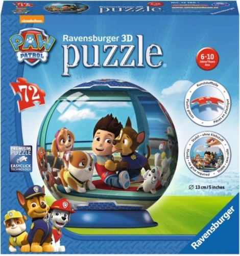 Oplev sjov puslespilshygge med Ravensburger 3D-puslesfære med motiv af Paw Patrol til børn fra 6 år. 72 solide, buede brikker passer præcist sammen og danner en farverig sfærisk kugle med yndlingsheltene som Chase, Marshall og Skye. Perfekt til udvikling af logisk tænkning og koncentration, med holdbar udførelse til gentagen samling.