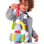 Det magnetiske byggesæt SmartMax Start Plus er det ideelle valg for små opdagelsesrejsende. Sættet indeholder 30 dele, inklusive lange stænger, mellemstænger, kurver og forbindelseskugler, der gør det muligt at bygge både enkle og komplekse konstruktioner. Børn kan prøve at bygge forskellige 2D- og 3D-former og strukturer som tårne eller broer.