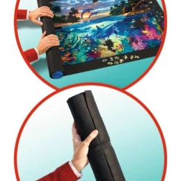 Spar plads og beskyt dine igangværende eller færdige puslespil med RAVENSBURGER rullemåtte. Skridsikker, med kvalitets plastcylinder med patenteret system og ideel til puslespil op til 1500 brikker (ca. 100 × 60 cm). Læg, rul sammen, fastgør med gummibånd, og opbevar eller transportér sikkert.