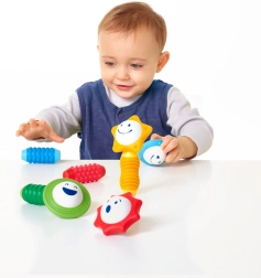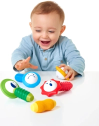 SmartMax-sættet er designet til at understøtte finmotorik og sansefornemmelse hos små børn. Indeholder 4 magnetiske stænger med blødt overflade og 4 kugler i blomsterform, der afgiver unikke lyde ved rysten. Hver kugle viser forskellige følelser, hvilket lærer børn at skelne følelser og farver.