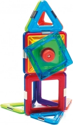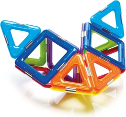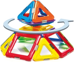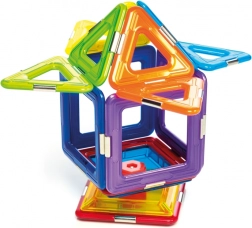Konstruktionssættet indeholder i alt 6 magnetiske firkanter, 8 trekanter og 1 spinner, hvilket giver rig mulighed for at eksperimentere. Dette sæt er ikke kun sjovt, men også pædagogisk og udviklende for børns færdigheder som rumlig forestilling, koordination, koncentration og kreativitet.