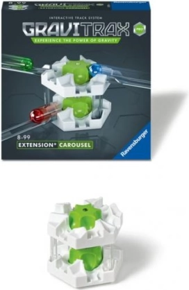 Udvid din kuglebane med det actionfyldte Karrusel-element til GRAVITRAX PRO og mangedobl sjov og kreativitet. Hver kugle sætter drejeskiven i gang mod urets retning og kan enten køre over drejeskiven eller falde ét niveau ned. Elementet er beregnet som en udvidelse til startsættet og er ideelt til at bygge flere-etagers baner med høj variation.