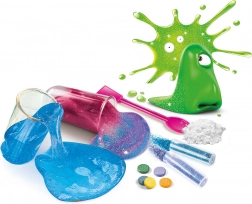 Der medfølger alsidige materialer, som gør eksperimenterne mere spændende. Fra smukt glitrende slim til sjove reagensglas.