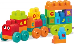 Dette farverige læringssæt lader dig forbinde tre undervogne med hjul til et tog og stable bogstavklodser på dem. Børn lærer på en legende måde alfabetet, skaber de første ord og træner hånd-øje-koordination.