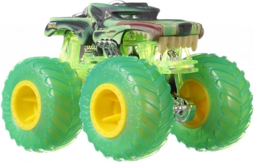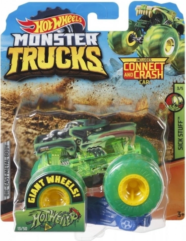 De legendariske Hot Wheels Monster Trucks i skala 1:64 leverer maksimal action. Trykstøbt metalkarosseri, robust chassiskonstruktion og ekstra store hjul klarer stød, hop og at knuse modstandere. Hver truck har sit unikke navn, ydelse og stil at “bryde igennem” med – ideel til spændende dueller og samlerpassion.
