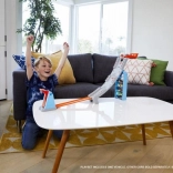 Alt, hvad du behøver, er i æsken: orange skinner, affyrere, sving, dekorative flag og 1 bil til øjeblikkelig leg. De robuste plastdele tåler intens action og udvikler finmotorik, øje–hånd-koordination og kreativitet.