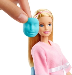 Arbejdsstationen med tre skåle, holdere og hylder holder alt værktøj lige ved hånden. Barbie har en behagelig badekåbe og hjemmesko på, og takket være bøjelige knæ bliver legescenerne endnu mere realistiske. Sættet styrker finmotorik, kreativitet og rolleleg med fokus på velvære og selvpleje.