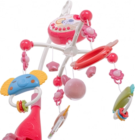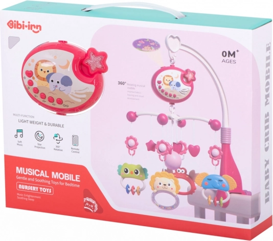 Karrusellen med søde dyr fanger babys opmærksomhed og støtter den sensoriske udvikling. Projektoren projicerer blide stjernemotiver på loftet, mens op til 40 beroligende melodier skaber en behagelig atmosfære til indsovning. Rotation af vedhængene efterligner den rolige bevægelse, som børn elsker.