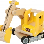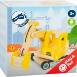 Denne trægravemaskine i natur- og guldfarver giver realistisk byggepladsleg. Med fuld 360° rotation og en skovl med trisse kan børn nemt samle op, flytte og tømme materialer. Legetøjet er lavet af 100% træ, er solidt, stabilt og designet til daglig leg.